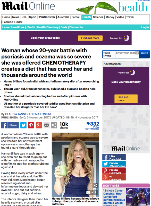 Hanna Sillitoe was blighted by acne, eczema and psoriasis for more than 20 years. But having now completely overhauled her eating regime - and transformed her skin as a result - the 37-year-old has published a tell-all book to help others do the same.
